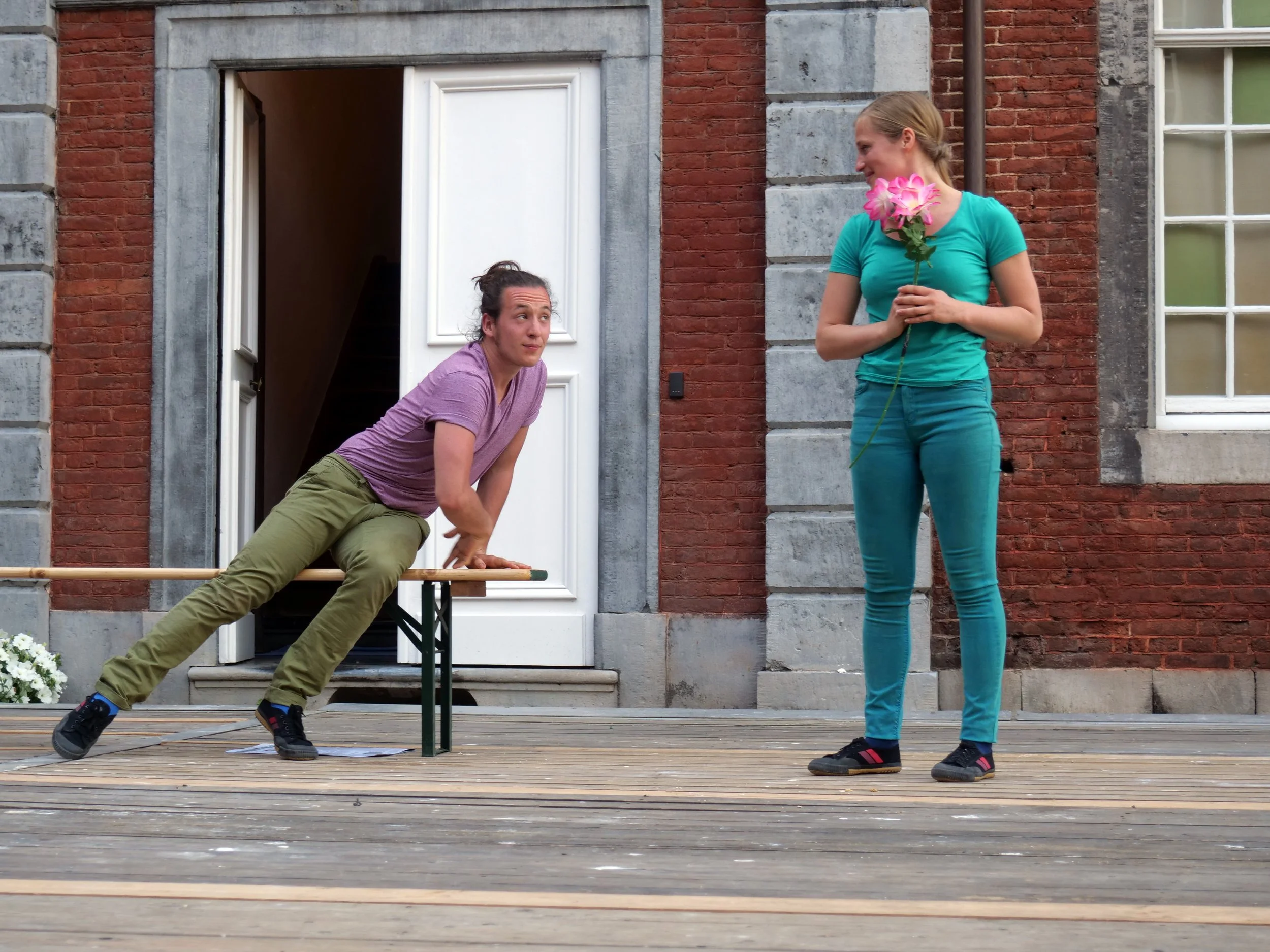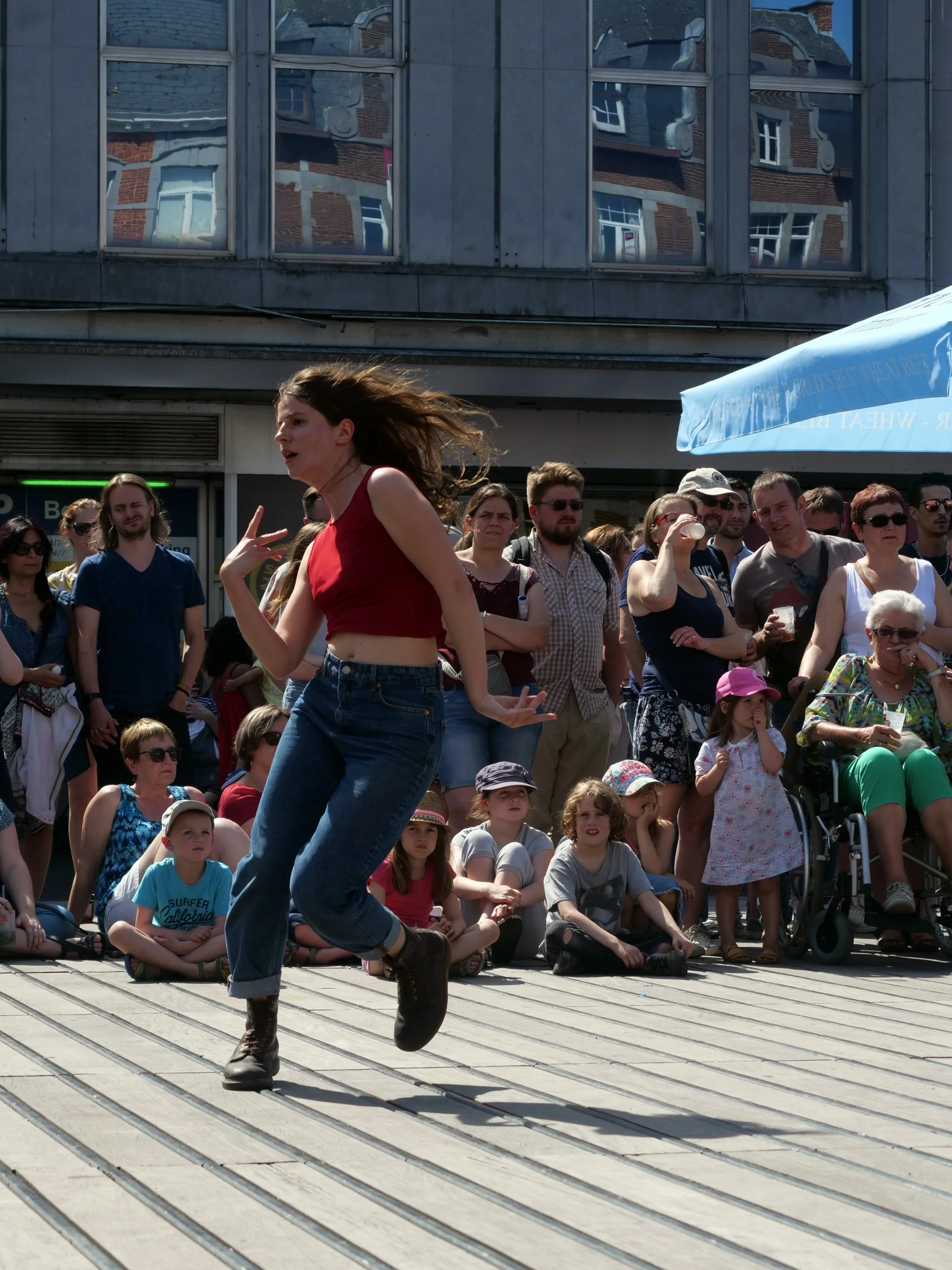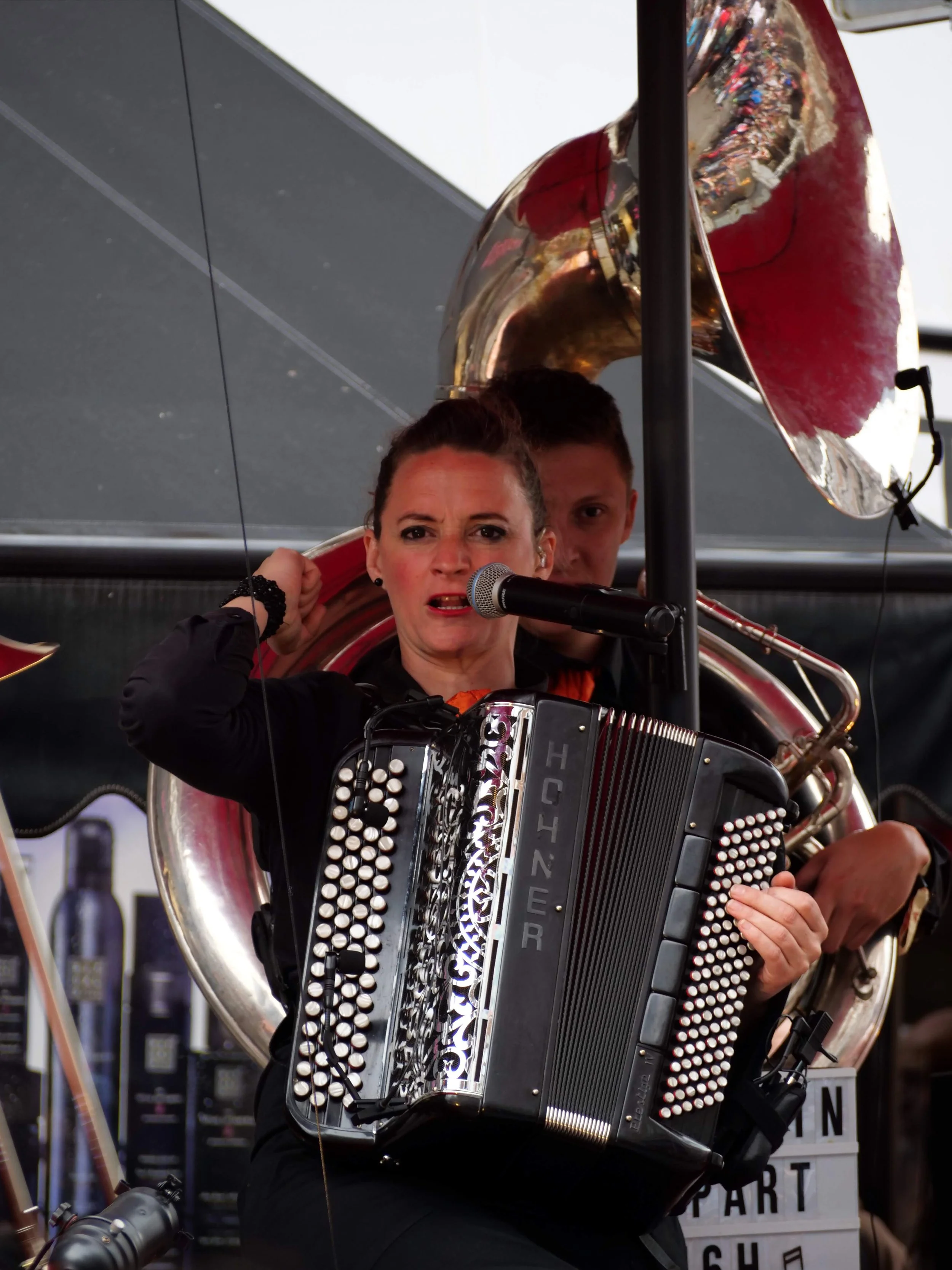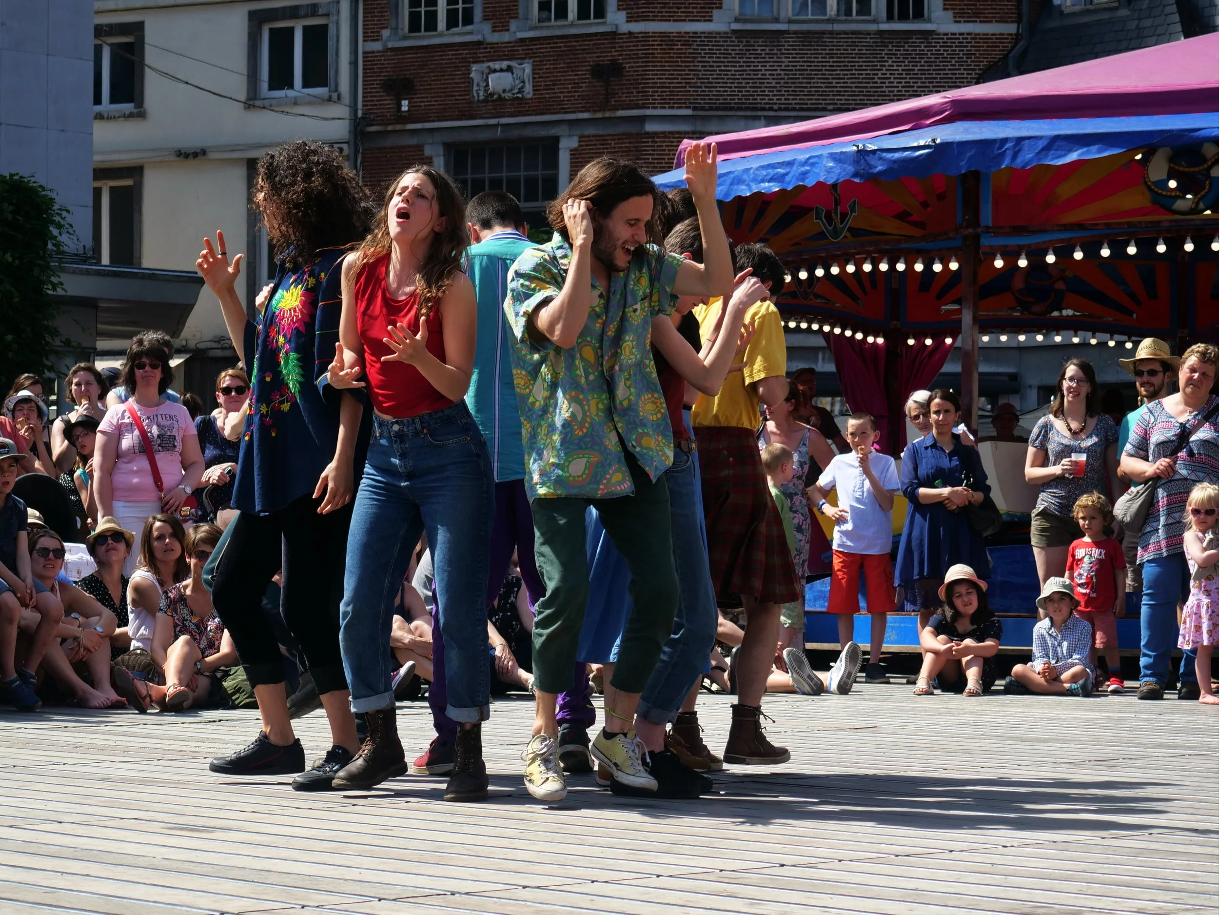 The Echasseurs Namurois heading towards their next joust, while a music band makes its way in.